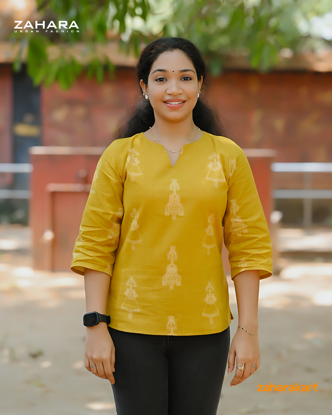 Mustard Folk Art Cotton Top