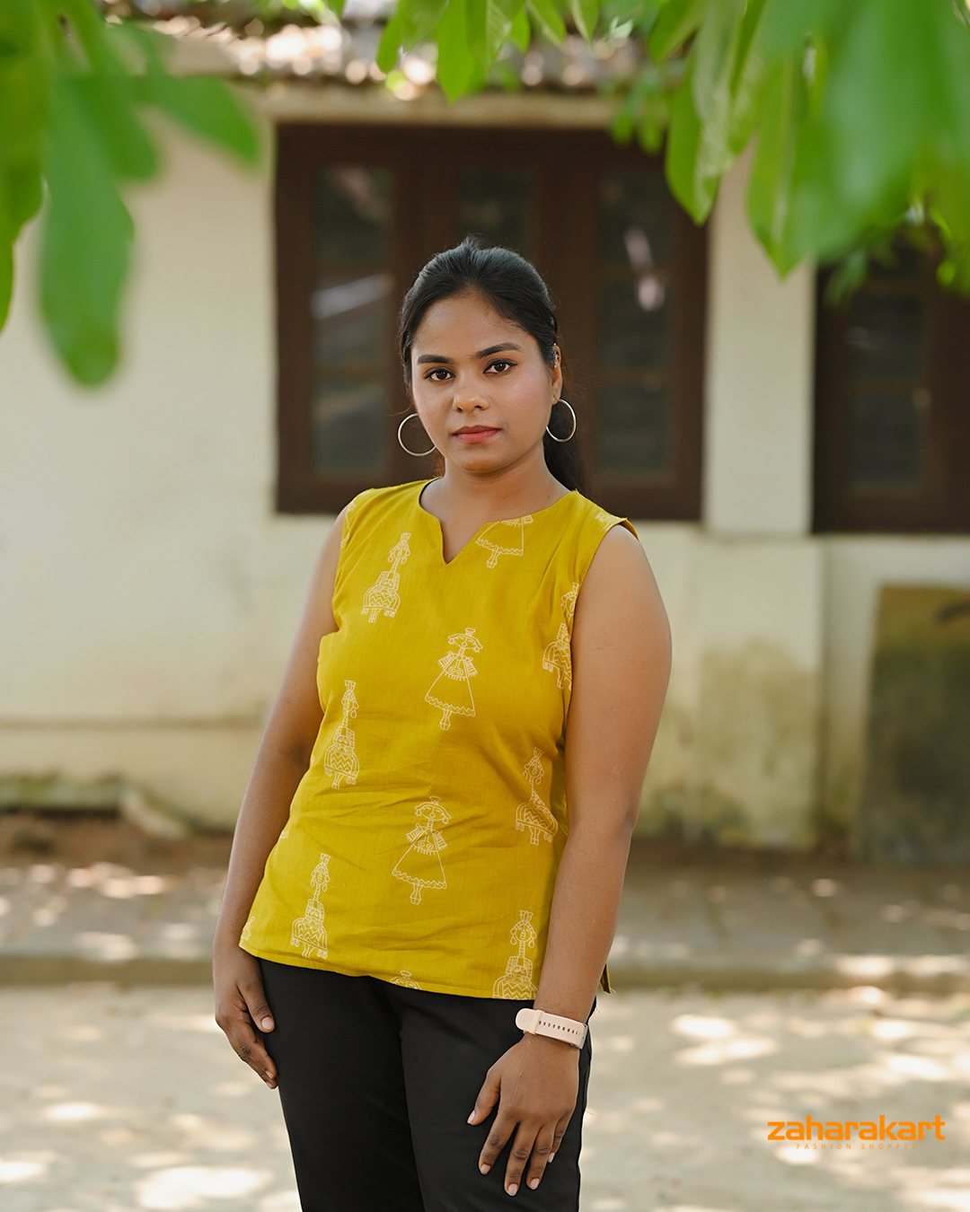 Mustard Folk Art Sleeveless Top